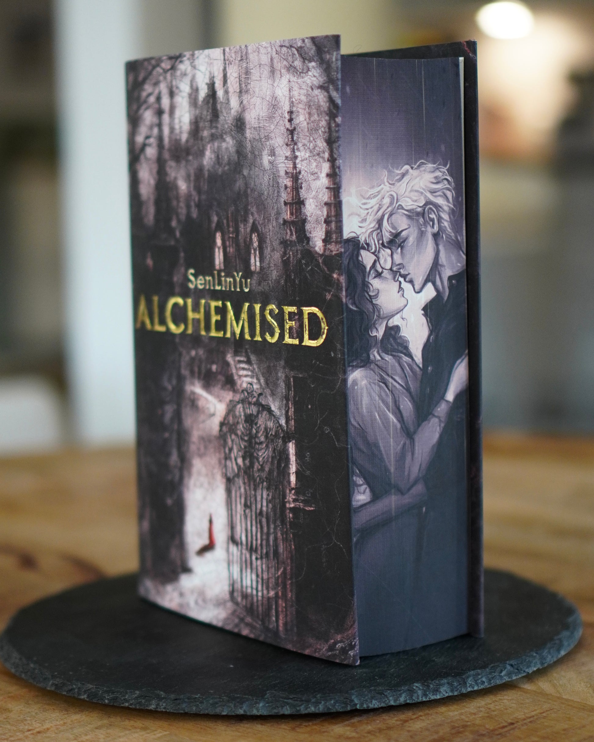 This exclusive copy of Alchemised by SenLinYu features special edge art, digitally painted and printed by me, Hanna Bookpaintings.